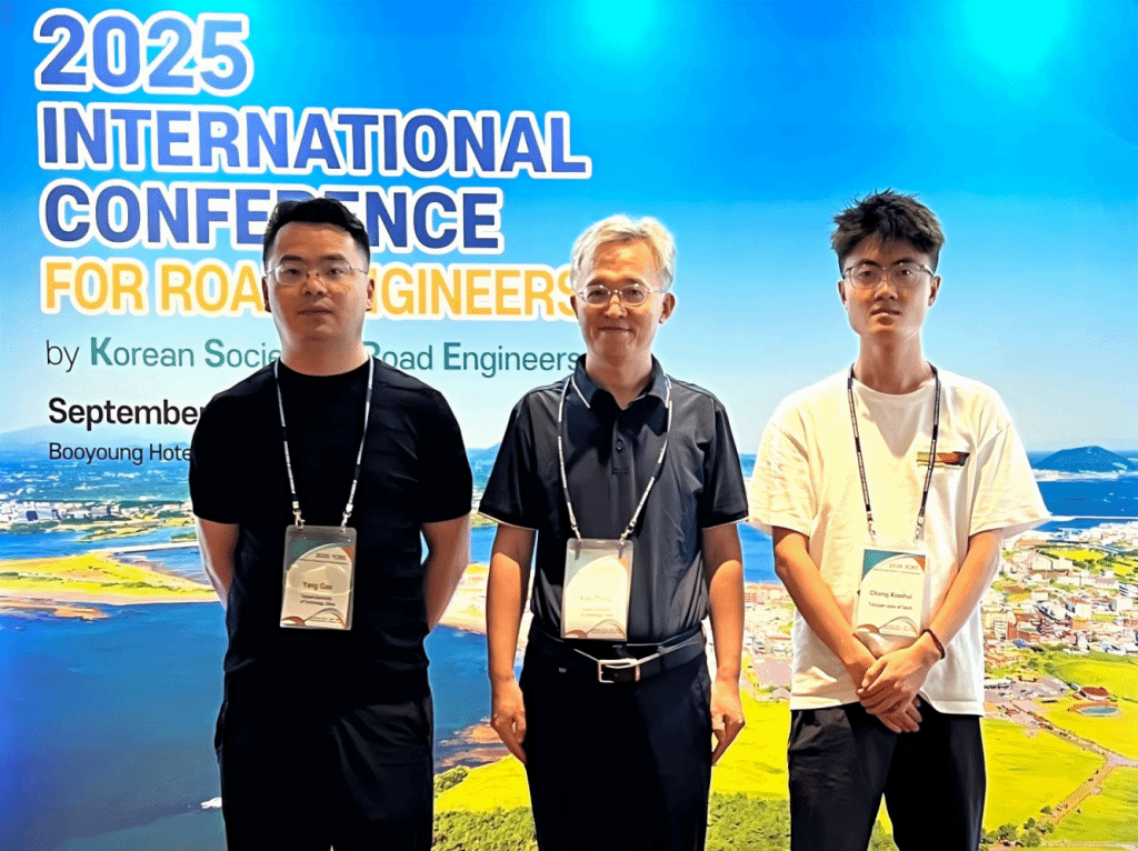2025年9月23日至26日,2025国际道路工程师大会(ICRE 2025)在韩国济州岛成功举办。此次论坛由韩国道路工程师协会主办,并由韩国国土交通部赞助。应韩国道路工程师学会会长Cheolwoo Park教授及组委会邀请,我院副院长、道路与桥梁系主任张翛教授、高阳教师及常晓辉博士生一行赴会,积极参与交流与学习。