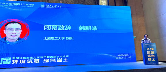 2025年11月22日至23日,第七届全国环境岩土力学与工程青年学术论坛在湖南株洲顺利召开,我院韩鹏举教授带领团队成员参会,以学术报告传递研究成果,在论坛中展现了学校在环境岩土及文物保护领域的研究实力与青年学术风采。