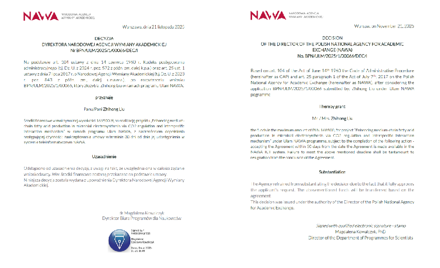 近日,经过波兰国家学术交流署(NAWA)的严格申报、材料评审与多轮遴选,我院刘芝宏副教授成功入选 2025 年度波兰 “乌拉姆人才计划”。这是我院在国际人才项目申报领域的重要成果,也标志着我院在给排水工程领域的研究实力获得国际权威机构的高度认可。此次入选,是国际学术界对刘芝宏副教授科研实力的高度认可,也为我院拓展国际科研合作网络、提升学科国际影响力奠定了坚实基础。