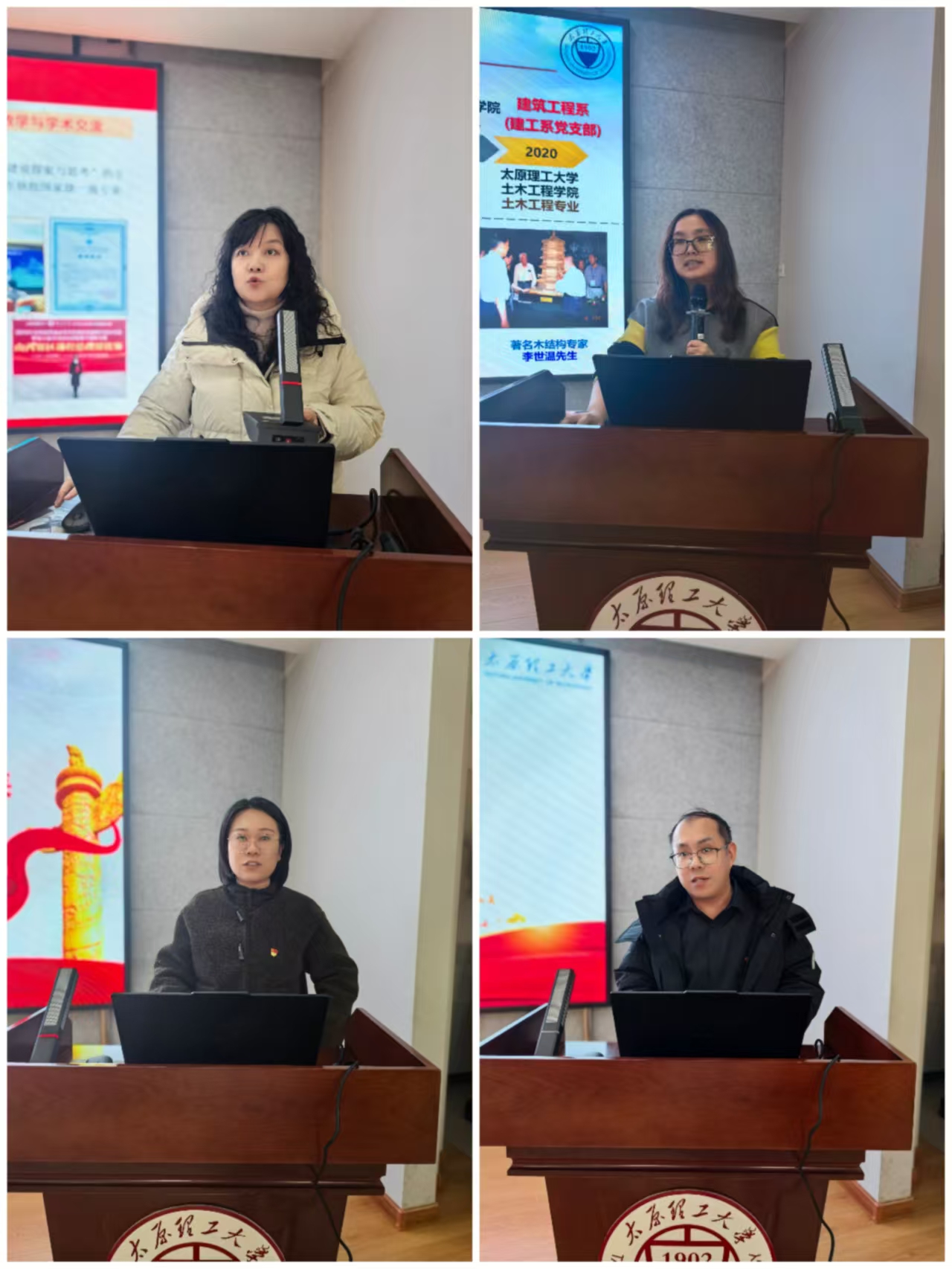 会议前,全体支部书记提交2025年支部书记书面述职报告。院党委安排了5位五星级支部书记和2位2025年申报五星级党组织支部书记进行了现场述职,现场述职的程欣、何斌、苏冰琴、宋娜、张振银、邱斌、柳丽7位支部书记依次登台,围绕“党建引领 砼心筑才”“钢心铸魂·构梦堡垒”等主题,以图文并茂的形式系统汇报支部建设成效。其中,建工教师党支部,推动高质量党建与事业发展实现同频共振与同向聚合,支部立足顶层设计,系统谋划并构建了以“四个强化”为核心的党建工作体系:以“强堡垒”铸魂育人,构筑政治引领新范式;以“强阵地”固本培元,夯实组织生活根基;以“强平台”凝心聚力,打造师生育人共同体;以“强业务”双融双促,激活事业发展新动能;土木工程研究生第三党支部展示了“全国党建工作样板支部”培育创建的阶段性成果,支部形成了以党建为基础、科研创新为核心、服务师生为宗旨的模式:围绕专业特色,充分发挥研究生在服务地方经济社会发展中的重要作用。以“导学团队培育创建”和“研究生党建工作”将人才培养、科研工作、教育管理、导师职责与党支部建设融合,强化“导学思政”保障体系;其他支部从构建“党建+学术”双轮驱动机制,到打造“红色工地”志愿服务品牌,充分彰显了党建引领科研创新、服务社会的强大动能。本科党支部则聚焦“筑牢战斗堡垒 争当时代先锋”,从规范档案管理、健全支部机制、深化产学研融合等维度分享经验,实现了党建工作与专业建设的同频共振。