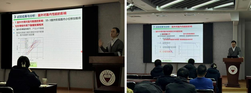 2025年11月26日上午10点,浙江大学潘文豪研究员应太原理工大学土木工程学院路国运教授邀请,在太原理工大学博学馆A座五层报告厅作了题为“组合框架楼板考虑面外组合作用的面内作用研究”的学术报告。本次报告吸引了学院相关方向教师、博士与硕士研究生积极参与,现场学术氛围浓厚。