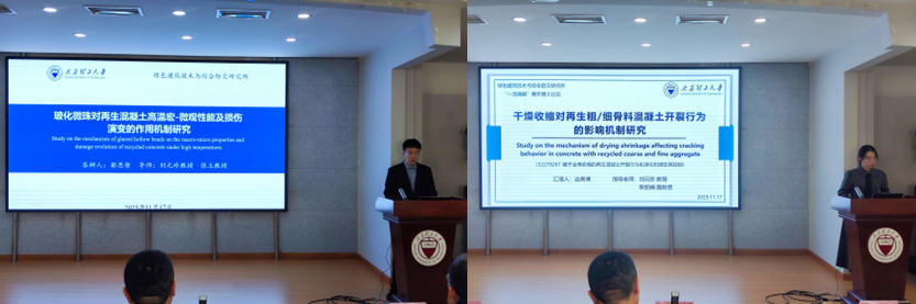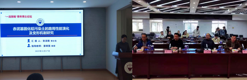为营造浓厚学术氛围,增强学术交流与沟通,助推青年博士生成长成才。2025年11月17日,学院在博学馆A座五层会议室举办了第509-511期“一流策略”青年博士论坛。2020级博士研究生都思哲和2021级博士研究生边昊博、张洁雅先后作了题为《玻化微珠对再生混凝土高温宏-微观性能及损伤演变的作用机制研究》《干燥收缩对再生粗/细骨料混凝土开裂行为的影响机制研究》、《赤泥基固化铅污染土的路用性能演化及变形机制研究》和的学术报告。山西省建设工程质量安全技术站正高级工程师王新宇、低碳建筑山西省实验室科技部正高级工程师郭庆、土木工程学院刘元珍教授、马钢教授以及何斌教授出席本次论坛并对学术报告进行了点评,相关师生代表参加了本次论坛。